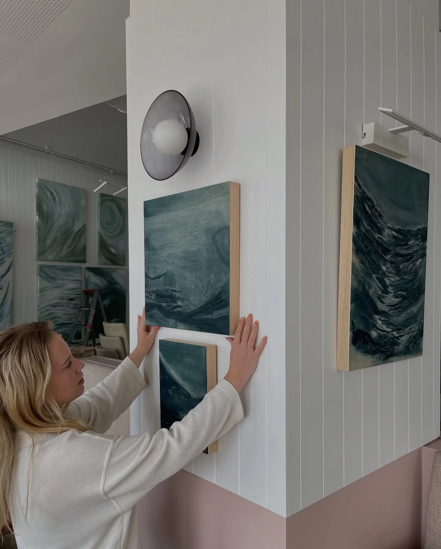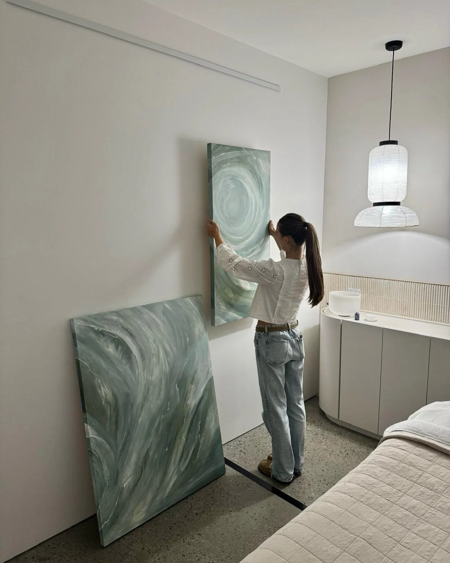 Created in her Perth studio, Millie’s paintings explore the dialogue between structure and spontaneity — a reflection of her background in both architecture and fine art. Layered and intuitive, each piece is marked by soft gestures and grounded tones of sea greens, clouded blues, and warm neutrals. These colours become vessels for memory, emotion, and atmosphere — shaping works that feel timeless, personal, and deeply connected to place.